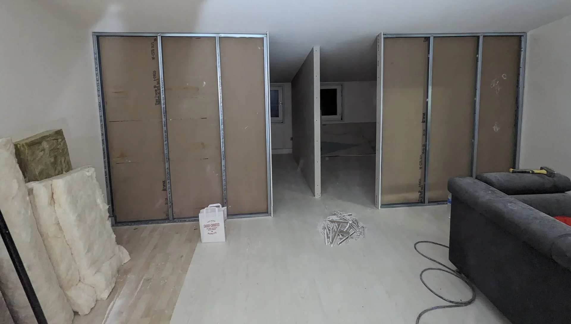 Pose de cloisons en plaques de plâtre, faux plafonds et travaux de finition pour structurer et embellir les espaces intérieurs